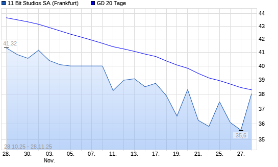 Mit dem Anstieg auf 38,48 EUR hat die 11 BIT STUDIOS SA-Aktie am 27.11.2025 die 20-Tage-Linie nach oben gekreuzt.Die 11 BIT STUDIOS SA-Aktie befindet sich seit dem 19.09.2024 im langfristigen ...weiterlesen