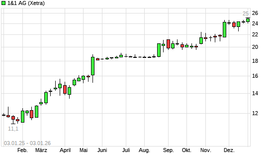 Mit dem Anstieg auf 25,50 EUR hat die 1&1 Drillisch-Aktie am 06.03.2026 die 50-Tage-Linie nach oben gekreuzt.Die 1&1 Drillisch-Aktie befindet sich seit dem 05.03.2025 im ...weiterlesen