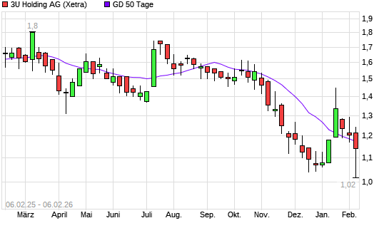 Mit dem Rücksetzer auf 1,12 EUR hat die 3U Holding-Aktie am 05.02.2026 die 50-Tage-Linie nach unten gekreuzt.Die 3U Holding-Aktie befindet sich seit dem 14.10.2025 im langfristigen Abwärtstrend ...weiterlesen