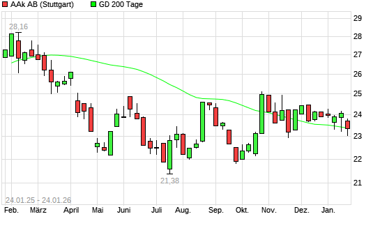 Mit dem Rücksetzer auf 23,30 EUR hat die AAK AB-Aktie am 23.01.2026 die 200-Tage-Linie nach unten gekreuzt.Die AAK AB-Aktie befand sich seit dem 22.01.2026 im langfristigen Aufwärtstrend ...weiterlesen