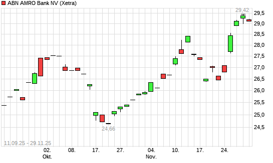 Mit dem Anstieg auf 29,19 EUR hat die ABN Amro Group-Aktie (ISIN NL0011540547) am 28.11.2025 ein neues All-Time-High erreicht und damit den Kurs vom 27.11.2025 eingestellt.Die ABN Amro Group-Aktie ...weiterlesen
