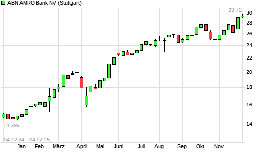 ABN Amro Group ist Teil des 1685 Titel umfassenden Anlageuniversum der boerse.de-Signale Aktien Welt. In der großen Trendauswertung vom 28.11.2025 ist der Titel von Rang 142 auf Rang 111 aufgestiegen.Gesteuert ...weiterlesen