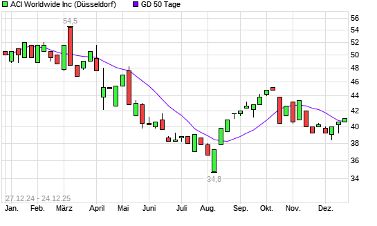 Mit dem Anstieg auf 41,20 EUR hat die ACI Worldwide-Aktie am 23.12.2025 die 50-Tage-Linie nach oben gekreuzt.Die ACI Worldwide-Aktie befindet sich seit dem 10.11.2025 im langfristigen Abwärtstrend ...weiterlesen