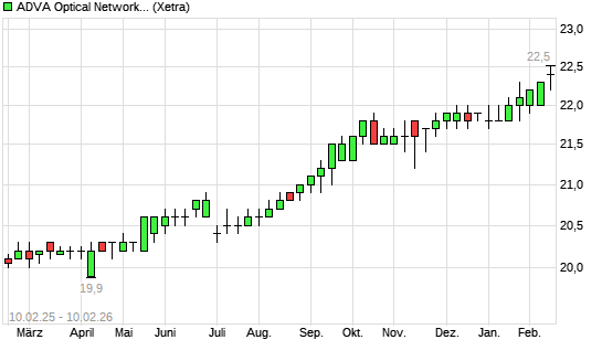 Mit dem Anstieg auf 22,40 EUR hat die ADVA Optical Networking-Aktie (ISIN DE0005103006) am 09.02.2026 ein neues 12-Monats-Hoch erreicht und damit den Kurs vom 05.02.2026 ...weiterlesen