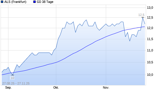Mit dem Anstieg auf 12,50 EUR hat die ALS-Aktie am 26.11.2025 die 38-Tage-Linie nach oben gekreuzt.Die ALS-Aktie befindet sich seit dem 05.06.2025 im langfristigen Aufwärtstrend und hat in diesem ...weiterlesen