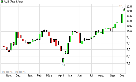 Mit dem Anstieg auf 12,30 EUR hat die ALS-Aktie (ISIN AU000000ALQ6) am 08.10.2025 ein neues All-Time-High erreicht und damit den Kurs vom 07.10.2025 eingestellt.Die ALS-Aktie befindet sich seit ...weiterlesen