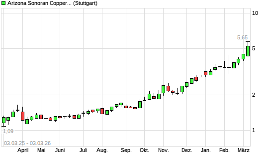 Mit dem Anstieg auf 5,50 EUR hat die ARIZONA SONORAN COPPER-Aktie (ISIN CA04058Q1054) am 02.03.2026 ein neues All-Time-High erreicht und damit den Kurs vom ...weiterlesen