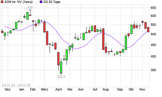 Mit dem Rücksetzer auf 508,80 EUR hat die ASM International-Aktie am 13.11.2025 die 50-Tage-Linie nach unten gekreuzt.Die ASM International-Aktie befindet sich seit dem 18.09.2025 im langfristigen ...weiterlesen