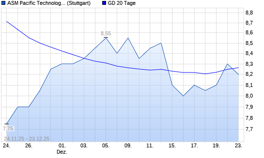Mit dem Anstieg auf 8,35 EUR hat die ASM Pacific Technology-Aktie am 22.12.2025 die 20-Tage-Linie nach oben gekreuzt.Die ASM Pacific Technology-Aktie befindet sich seit dem 05.09.2025 im langfristigen ...weiterlesen