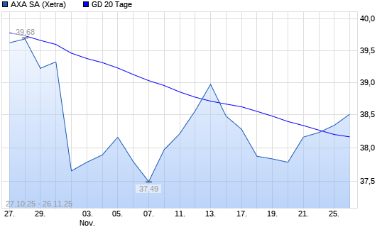 Mit dem Anstieg auf 38,34 EUR hat die AXA-Aktie am 25.11.2025 die 20-Tage-Linie nach oben gekreuzt.Die AXA-Aktie befindet sich seit dem 17.10.2025 im langfristigen Abwärtstrend und hat in diesem ...weiterlesen