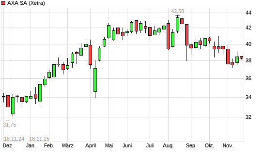 Mit dem Rücksetzer auf 37,60 EUR hat die AXA-Aktie (ISIN FR0000120628) am 17.11.2025 ein neues 6-Monats-Tief erreicht und damit den Kurs vom 07.11.2025 eingestellt.Die AXA-Aktie befindet ...weiterlesen
