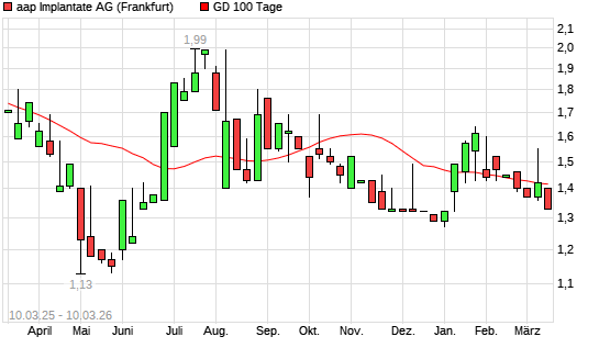 Mit dem Rücksetzer auf 1,39 EUR hat die Aap Implantate-Aktie am 09.03.2026 die 100-Tage-Linie nach unten gekreuzt.Die Aap Implantate-Aktie befindet sich seit dem 06.03.2026 ...weiterlesen