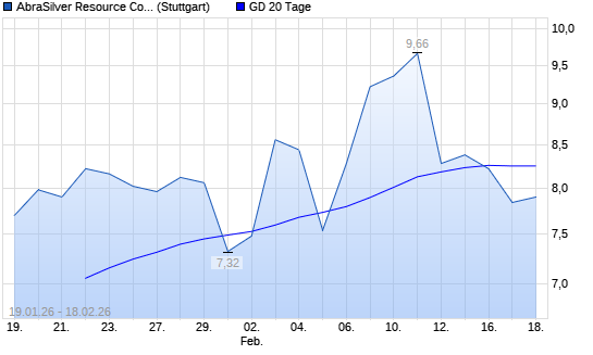 Mit dem Anstieg auf 9,60 EUR hat die Abrasilver Resource-Aktie (ISIN CA00379L3048) am 11.02.2026 ein neues All-Time-High erreicht und damit den Kurs vom 09.02.2026 eingestellt.Die Abrasilver ...weiterlesen