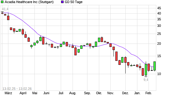Mit dem Anstieg auf 12,80 EUR hat die Acadia Healthcare-Aktie am 12.02.2026 die 50-Tage-Linie nach oben gekreuzt.Die Acadia Healthcare-Aktie befindet sich seit dem 25.09.2024 im langfristigen ...weiterlesen