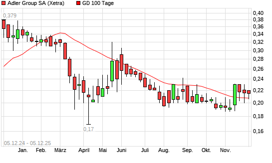Mit dem Rücksetzer auf 0,20 EUR hat die Adler-Aktie am 04.12.2025 die 100-Tage-Linie nach unten gekreuzt.Die Adler-Aktie befindet sich seit dem 27.11.2025 im langfristigen Abwärtstrend ...weiterlesen