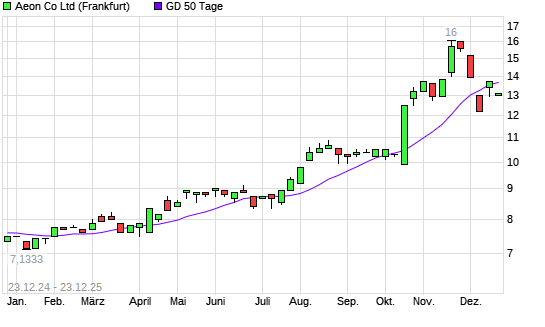 Mit dem Rücksetzer auf 13,00 EUR hat die Aeon-Aktie am 22.12.2025 die 50-Tage-Linie nach unten gekreuzt.Die Aeon-Aktie befindet sich seit dem 03.04.2025 im langfristigen Aufwärtstrend und ...weiterlesen