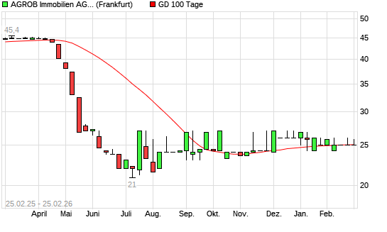 Mit dem Rücksetzer auf 25,00 EUR hat die Agrob VZ-Aktie am 24.02.2026 die 100-Tage-Linie nach unten gekreuzt.Die Agrob VZ-Aktie befindet sich seit dem 06.02.2026 im ...weiterlesen