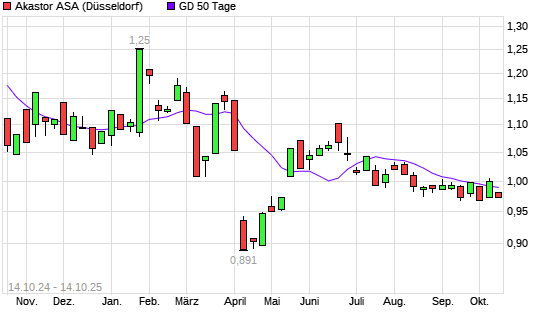 Mit dem Rücksetzer auf 0,98 EUR hat die Akastor ASA-Aktie am 13.10.2025 die 50-Tage-Linie nach unten gekreuzt.Die Akastor ASA-Aktie befindet sich seit dem 17.06.2025 im langfristigen Abwärtstrend ...weiterlesen
