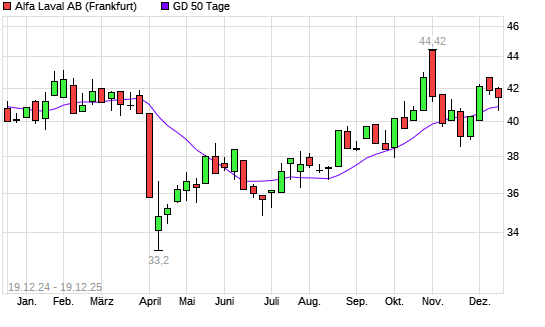 Mit dem Anstieg auf 41,44 EUR hat die Alfa Laval-Aktie am 18.12.2025 die 50-Tage-Linie nach oben gekreuzt.Die Alfa Laval-Aktie befindet sich seit dem 01.10.2025 im langfristigen Aufwärtstrend ...weiterlesen