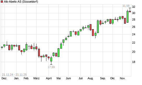 Mit dem Anstieg auf 31,46 EUR hat die Alk Abello-Aktie (ISIN DK0061802139) am 20.11.2025 ein neues All-Time-High erreicht und damit den Kurs vom 19.11.2025 eingestellt.Die Alk Abello-Aktie befindet ...weiterlesen