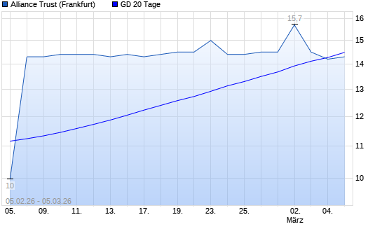 Mit dem Rücksetzer auf 14,20 EUR hat die Alliance Trust-Aktie am 04.03.2026 die 20-Tage-Linie nach unten gekreuzt.Die Alliance Trust-Aktie befindet sich seit dem 06.02.2026 ...weiterlesen