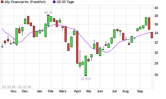 Mit dem Rücksetzer auf 33,77 EUR hat die Ally Financial-Aktie am 30.09.2025 die 50-Tage-Linie nach unten gekreuzt.Die Ally Financial-Aktie befindet sich seit dem 25.08.2025 im langfristigen ...weiterlesen