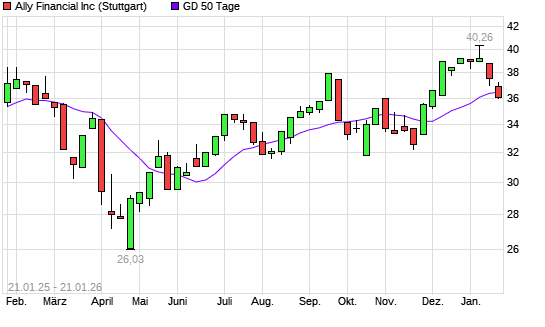 Mit dem Rücksetzer auf 36,65 EUR hat die Ally Financial-Aktie am 20.01.2026 die 50-Tage-Linie nach unten gekreuzt.Die Ally Financial-Aktie befindet sich seit dem 24.11.2025 im langfristigen ...weiterlesen