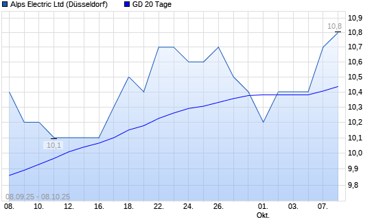 Mit dem Anstieg auf 10,90 EUR hat die Alps Electric-Aktie am 07.10.2025 die 20-Tage-Linie nach oben gekreuzt.Die Alps Electric-Aktie befindet sich seit dem 31.07.2025 im langfristigen Aufwärtstrend ...weiterlesen