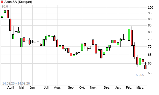 Mit dem Rücksetzer auf 57,00 EUR hat die Alten-Aktie (ISIN FR0000071946) am 13.03.2026 ein neues 5-Jahres-Tief erreicht und damit den Kurs vom 23.02.2026 eingestellt.Die ...weiterlesen