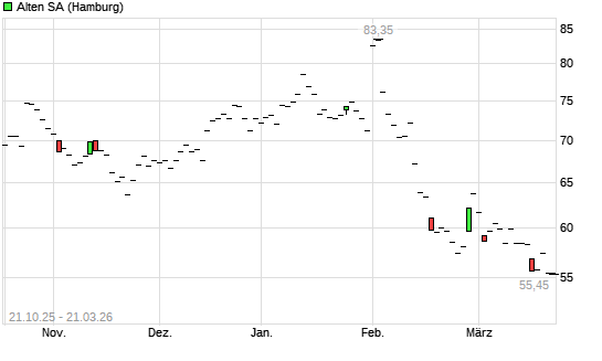 Mit dem Rücksetzer auf 53,25 EUR hat die Alten-Aktie (ISIN FR0000071946) am 20.03.2026 ein neues 5-Jahres-Tief erreicht und damit den Kurs vom 18.03.2026 eingestellt.Die ...weiterlesen