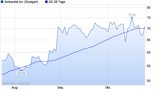 Mit dem Rücksetzer auf 68,50 EUR hat die Ambarella-Aktie am 23.10.2025 die 38-Tage-Linie nach unten gekreuzt.Die Ambarella-Aktie befindet sich seit dem 25.08.2025 im langfristigen Aufwärtstrend ...weiterlesen