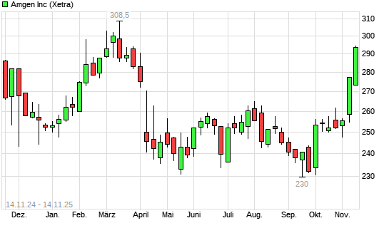 Mit dem Anstieg auf 292,85 EUR hat die Amgen-Aktie (ISIN US0311621009) am 13.11.2025 ein neues 6-Monats-Hoch erreicht und damit den Kurs vom 12.11.2025 eingestellt.Die Amgen-Aktie befindet sich ...weiterlesen