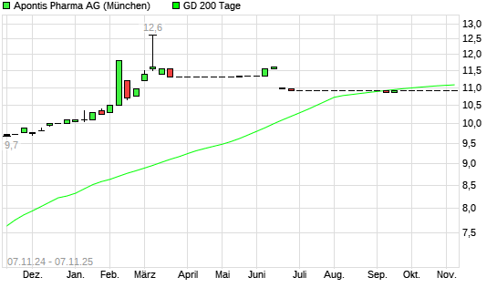 Mit dem Anstieg auf 10,85 EUR hat die Apontis Pharma-Aktie am 06.11.2025 die 200-Tage-Linie nach oben gekreuzt.Die Apontis Pharma-Aktie befand sich seit dem 30.10.2025 im langfristigen Abwärtstrend ...weiterlesen