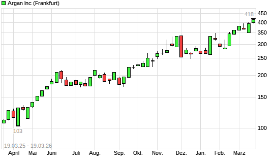 Mit dem Anstieg auf 418,00 EUR hat die Argan-Aktie (ISIN US04010E1091) am 18.03.2026 ein neues All-Time-High erreicht und damit den Kurs vom 12.03.2026 eingestellt.Die Argan-Aktie ...weiterlesen
