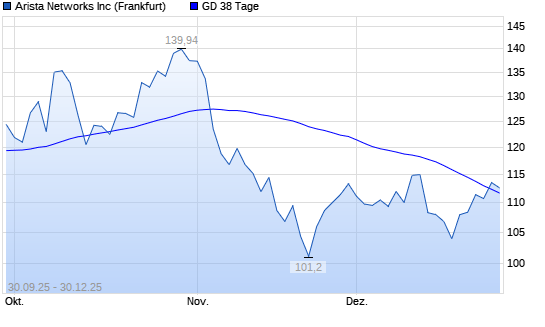 Mit dem Anstieg auf 113,56 EUR hat die Arista Networks-Aktie am 29.12.2025 die 38-Tage-Linie nach oben gekreuzt.Die Arista Networks-Aktie befindet sich seit dem 09.07.2025 im langfristigen Aufwärtstrend ...weiterlesen
