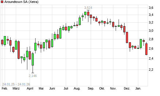 Aroundtown ist Teil des 333 Titel umfassenden Anlageuniversum des boerse.de-Signale Aktien DACH. In der großen Trendauswertung vom 30.01.2026 ist der Titel von Rang 232 auf Rang 228 aufgestiegen.Gesteuert ...weiterlesen