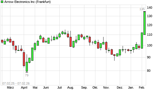 Mit dem Anstieg auf 135,00 EUR hat die Arrow Electronics-Aktie (ISIN US0427351004) am 06.02.2026 ein neues All-Time-High erreicht und damit den Kurs vom 30.06.2023 eingestellt.Die Arrow Electronics-Aktie ...weiterlesen