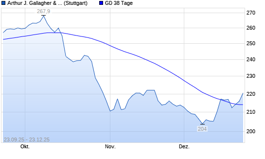 Mit dem Anstieg auf 215,40 EUR hat die Arthur J. Gallagher-Aktie am 22.12.2025 die 38-Tage-Linie nach oben gekreuzt.Die Arthur J. Gallagher-Aktie befindet sich seit dem 10.06.2025 im langfristigen ...weiterlesen