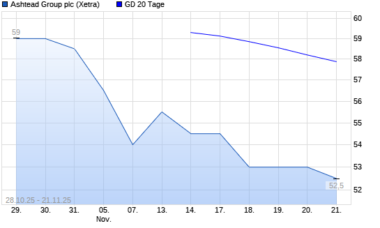 Mit dem Anstieg auf 54,50 EUR hat die Ashtead Group-Aktie am 27.11.2025 die 20-Tage-Linie nach oben gekreuzt.Die Ashtead Group-Aktie befindet sich seit dem 14.11.2025 im langfristigen Abwärtstrend ...weiterlesen
