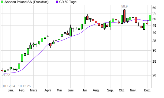Mit dem Anstieg auf 50,10 EUR hat die Asseco-Aktie am 09.12.2025 die 50-Tage-Linie nach oben gekreuzt.Die Asseco-Aktie befindet sich seit dem 22.03.2024 im langfristigen Aufwärtstrend und hat ...weiterlesen