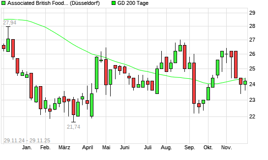Mit dem Anstieg auf 24,60 EUR hat die Associated British Foods-Aktie am 28.11.2025 die 200-Tage-Linie nach oben gekreuzt.Die Associated British Foods-Aktie befand sich seit dem 18.11.2025 im ...weiterlesen