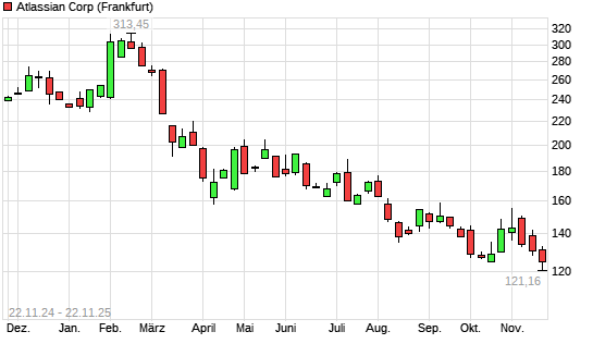 Mit dem Rücksetzer auf 124,82 EUR hat die Atlassian-Aktie (ISIN US0494681010) am 21.11.2025 ein neues 12-Monats-Tief erreicht und damit den Kurs vom 13.10.2025 eingestellt.Die Atlassian-Aktie ...weiterlesen