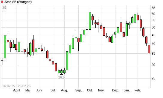 Mit dem Rücksetzer auf 35,20 EUR hat die Atos-Aktie (ISIN FR001400X2S4) am 25.02.2026 ein neues 6-Monats-Tief erreicht und damit den Kurs vom 24.02.2026 eingestellt.Die ...weiterlesen