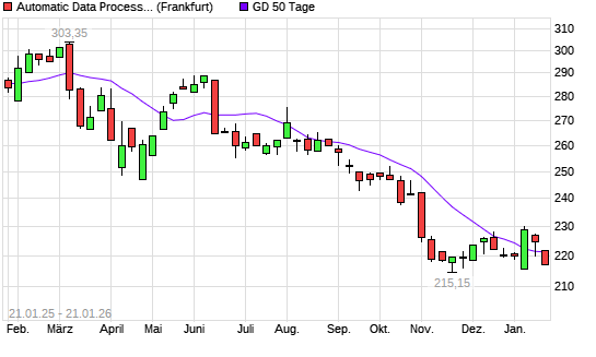 Mit dem Anstieg auf 222,10 EUR hat die Automatic Data Processing-Aktie am 23.01.2026 die 50-Tage-Linie nach oben gekreuzt.Die Automatic Data Processing-Aktie befindet sich seit dem 10.06.2025 ...weiterlesen