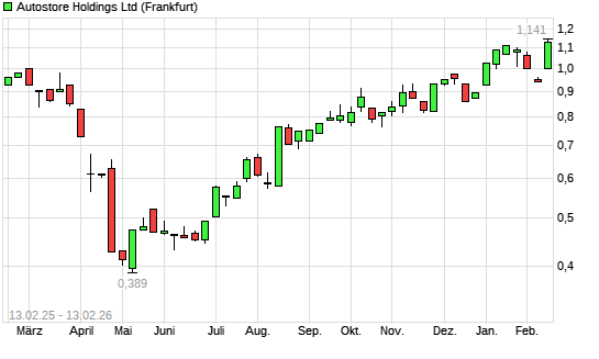 Mit dem Anstieg auf 1,13 EUR hat die Autostore Holdings-Aktie (ISIN BMG0670A1099) am 12.02.2026 ein neues 12-Monats-Hoch erreicht und damit den Kurs vom 15.01.2026 eingestellt.Die Autostore ...weiterlesen