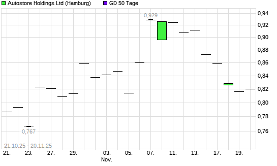Mit dem Rücksetzer auf 0,82 EUR hat die Autostore Holdings-Aktie am 19.11.2025 die 50-Tage-Linie nach unten gekreuzt.Die Autostore Holdings-Aktie befindet sich seit dem 04.09.2025 im langfristigen ...weiterlesen