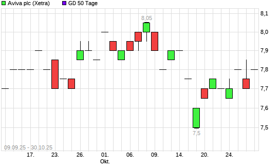 Mit dem Anstieg auf 7,75 EUR hat die Aviva-Aktie am 31.10.2025 die 50-Tage-Linie nach oben gekreuzt.Die Aviva-Aktie befindet sich seit dem 15.04.2025 im langfristigen Aufwärtstrend und hat in ...weiterlesen