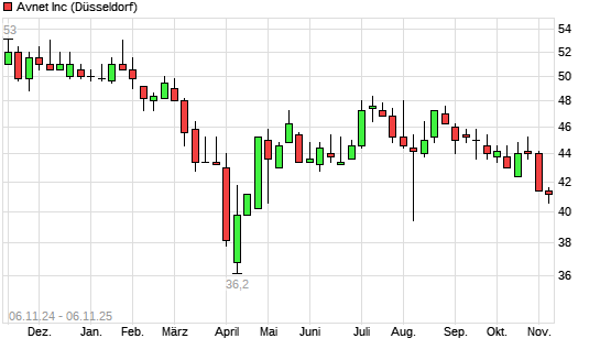 Mit dem Rücksetzer auf 40,80 EUR hat die Avnet-Aktie (ISIN US0538071038) am 05.11.2025 ein neues 6-Monats-Tief erreicht und damit den Kurs vom 04.11.2025 eingestellt.Die Avnet-Aktie befindet ...weiterlesen
