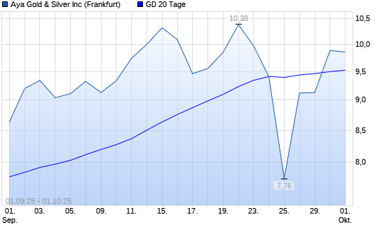 Mit dem Anstieg auf 9,89 EUR hat die Aya Gold & Silver-Aktie am 30.09.2025 die 20-Tage-Linie nach oben gekreuzt.Die Aya Gold & Silver-Aktie befindet sich seit dem 26.09.2025 im langfristigen ...weiterlesen