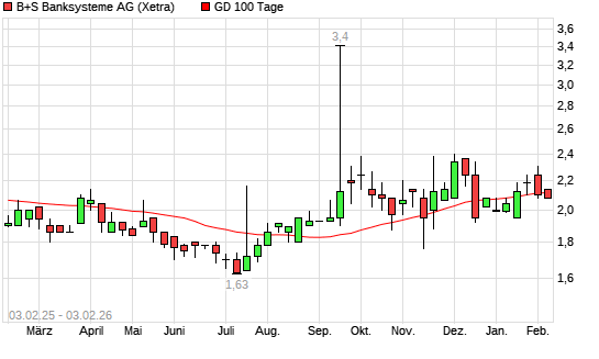 Mit dem Rücksetzer auf 1,98 EUR hat die B+S Banksysteme-Aktie am 02.02.2026 die 100-Tage-Linie nach unten gekreuzt.Die B+S Banksysteme-Aktie befindet sich seit dem 22.12.2025 im langfristigen ...weiterlesen